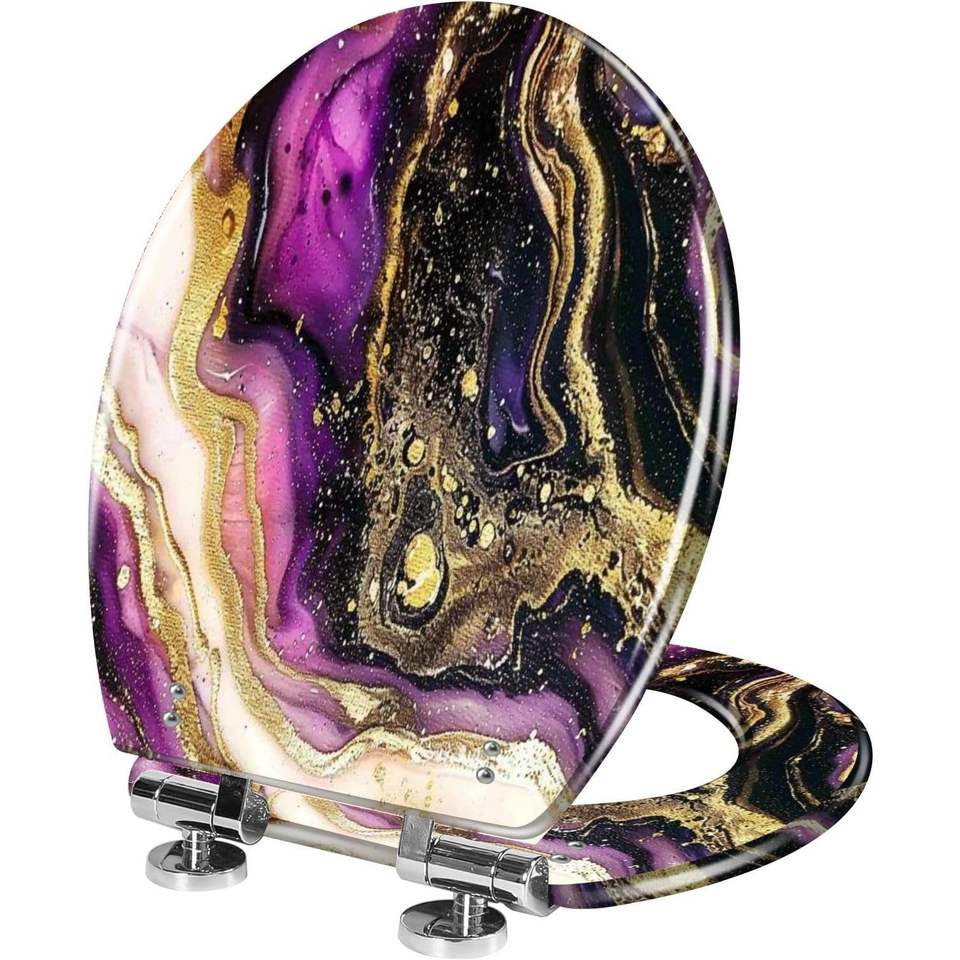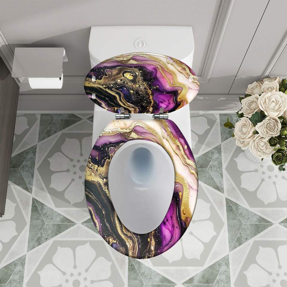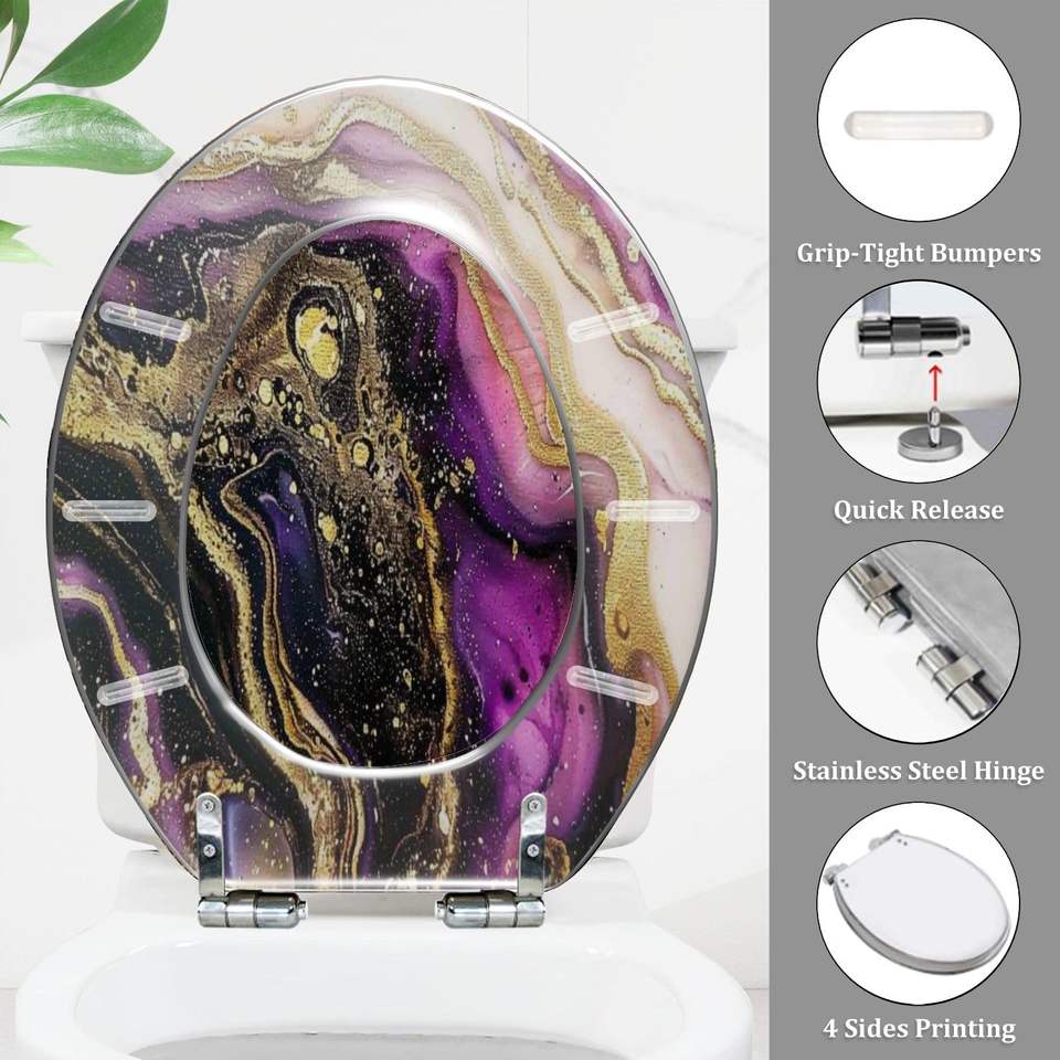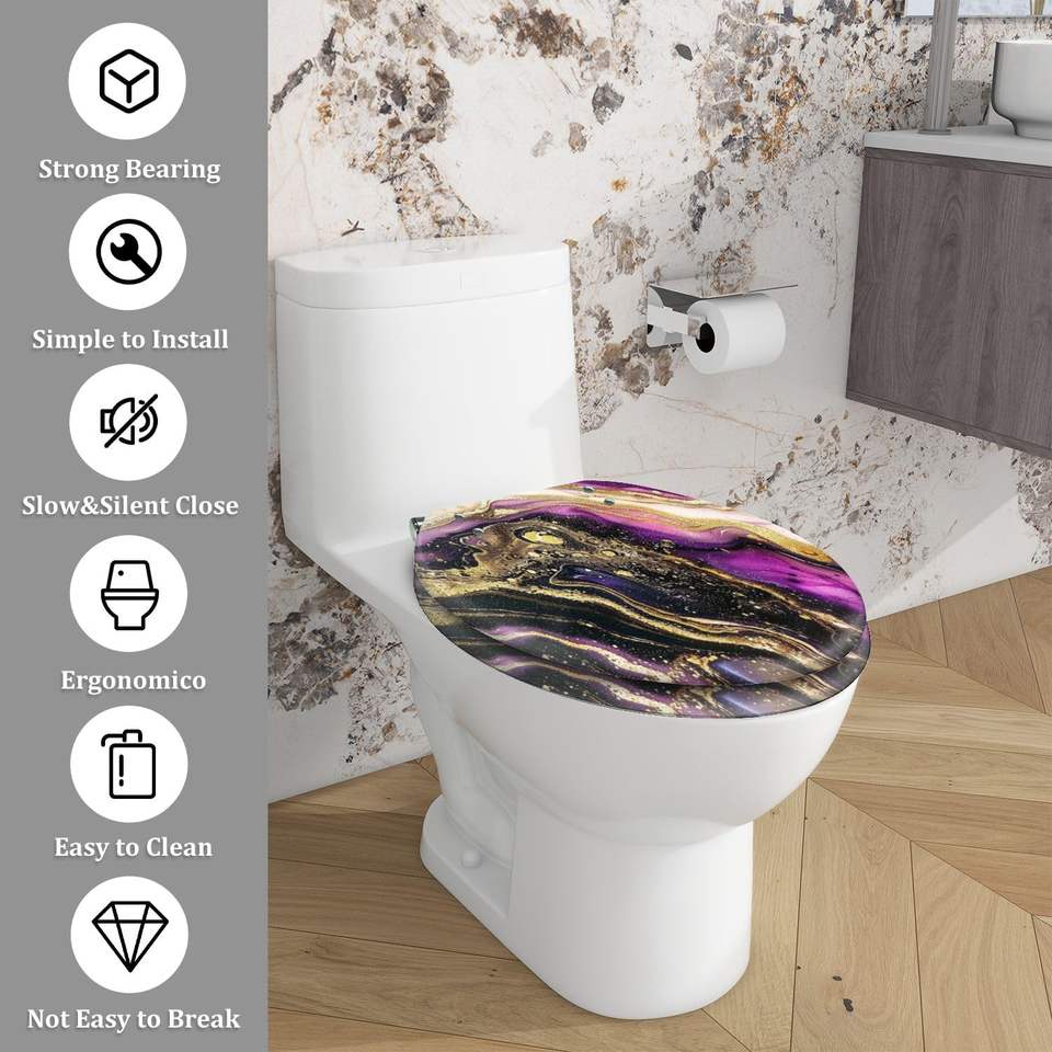 บานพับปิดฝาชักโครกสีโรสโกลด์แบบทันสมัยพิมพ์ลายหินอ่อนเหลวติดตั้งง่ายบานพับปิดแบบเงียบ