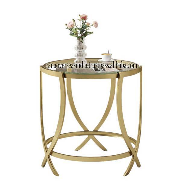 ชื่อผลิตภัณฑ์:โต๊ะกลางทำจากแก้วทรงกลมกรอบโลหะเคลือบทอง