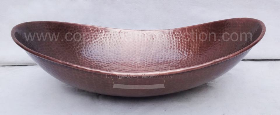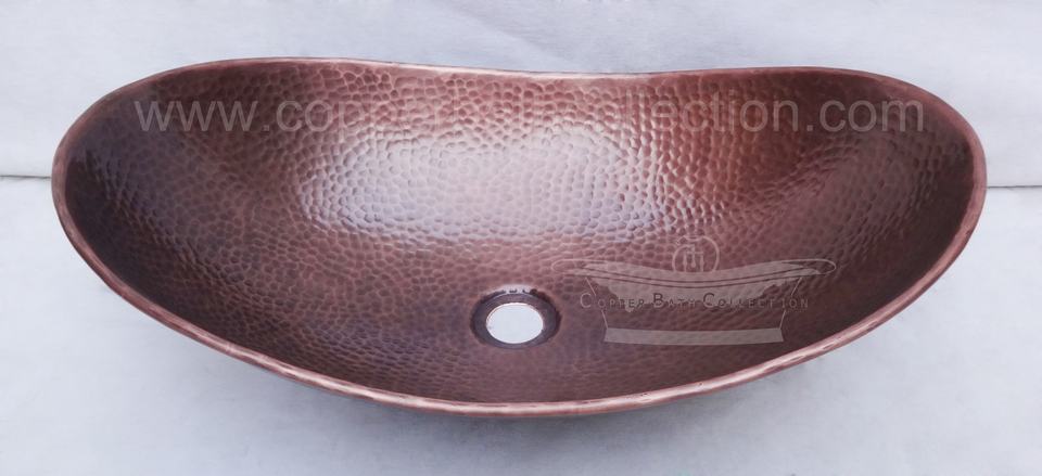 อ่างล้างหน้าทรงรีแบบโบราณ ทำจากทองแดงตีลาย สำหรับติดตั้งบนเคาน์เตอร์ พร้อมรับประกัน 4 ปี