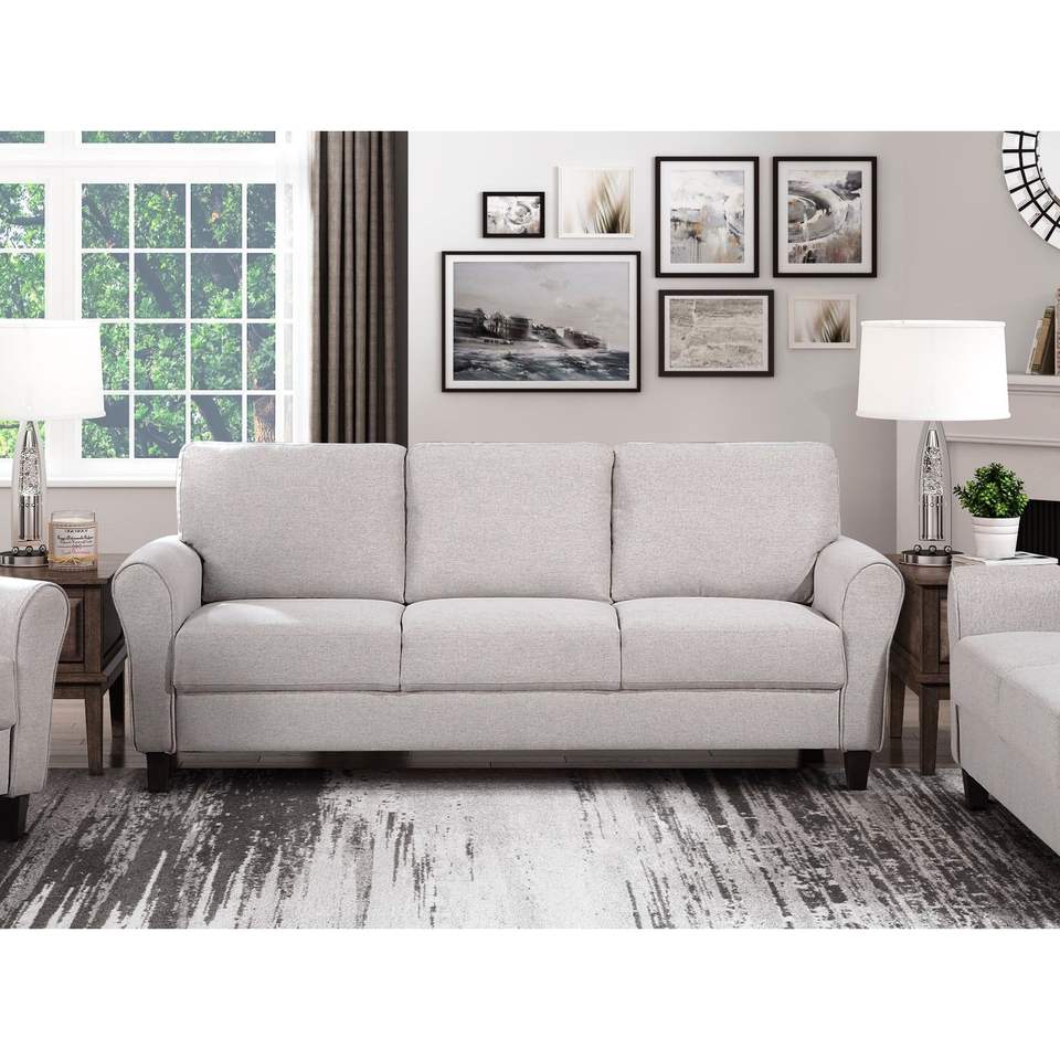 โซฟาผ้าเนื้อสัมผัสสีทรายแบบโมเดิร์น 1 ชิ้น พร้อมเบาะรองนั่งในตัว สำหรับเฟอร์นิเจอร์ห้องนั่งเล่น