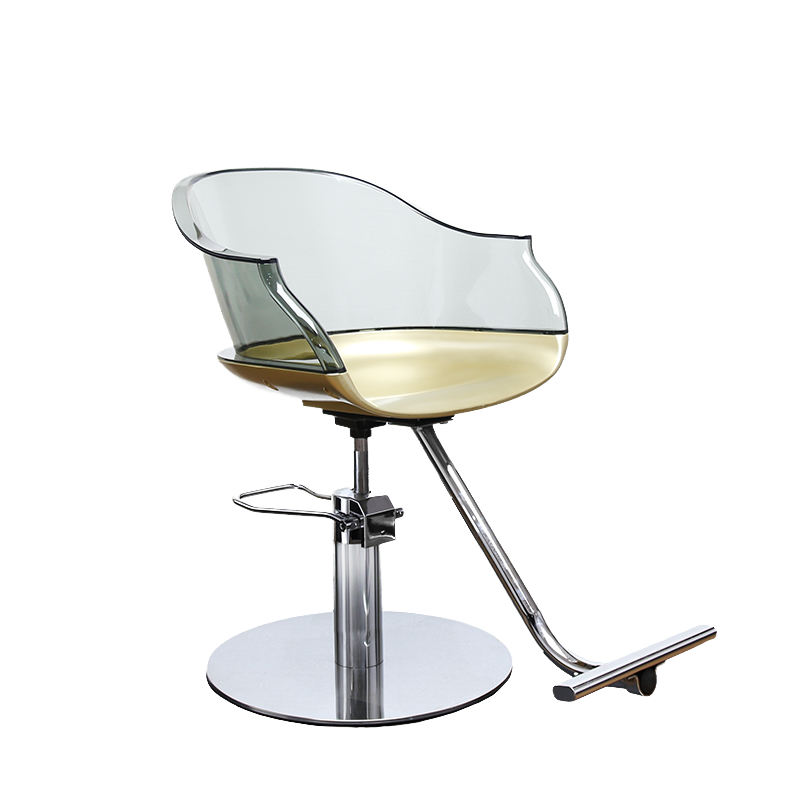 เก้าอี้ตัดผมอลูมิเนียมสีเหลืองและโปร่งใสทันสมัยพร้อมฐานโครเมี่ยมเฟอร์นิเจอร์เชิงพาณิชย์สำหรับร้านเสริมสวย