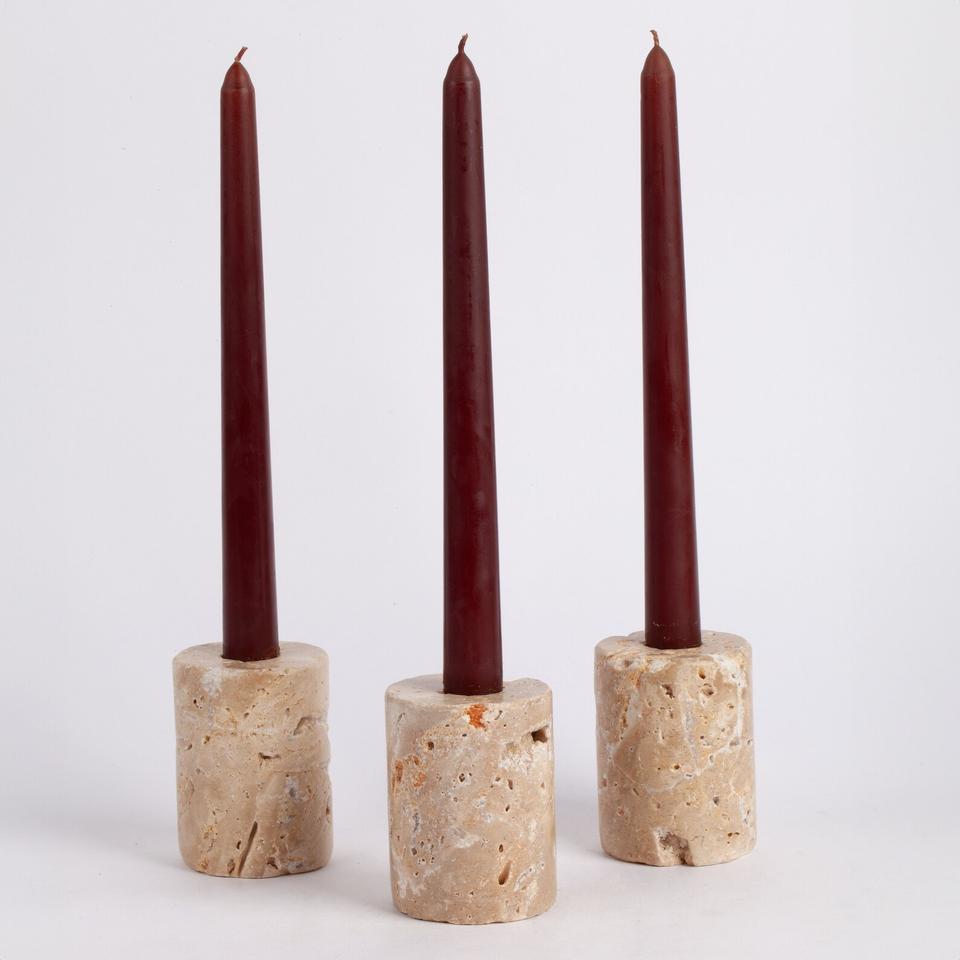 เชิงเทียนหินทราเวอร์ทีนแบบสามชั้น ดีไซน์ประติมากรรม งานแฮนด์เมด เพิ่มความหรูหราและความอบอุ่นให้กับการตกแต่งบ้าน