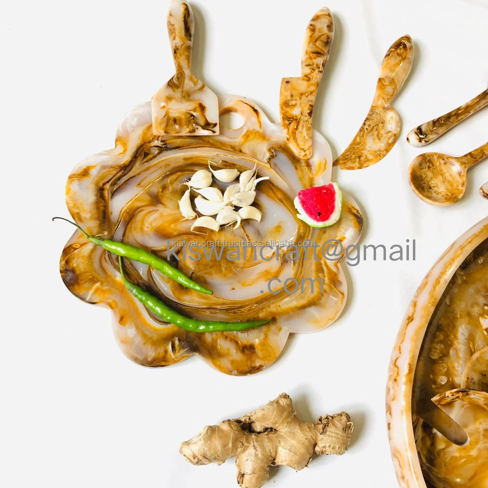 ชามทรงไข่เรซิ่นขัดเงาสีธรรมชาติ ดีไซน์อเมริกันทันสมัย บรรจุกล่อง สำหรับใส่ผลไม้บนโต๊ะอาหารในงานปาร์ตี้