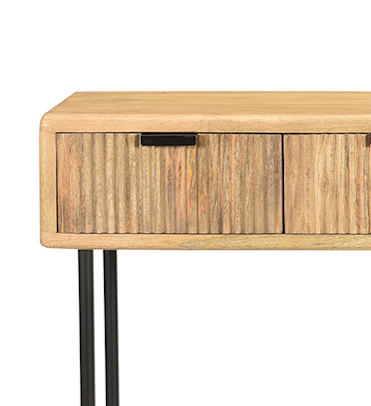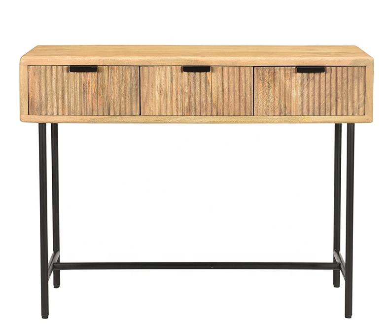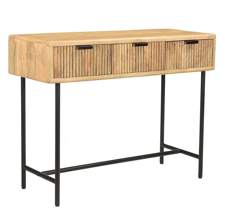 Modern Trendy Solid Mango Wood Console Table Natural Grain Finish Industrial Iron Design for Villa Hotel Living Room Office