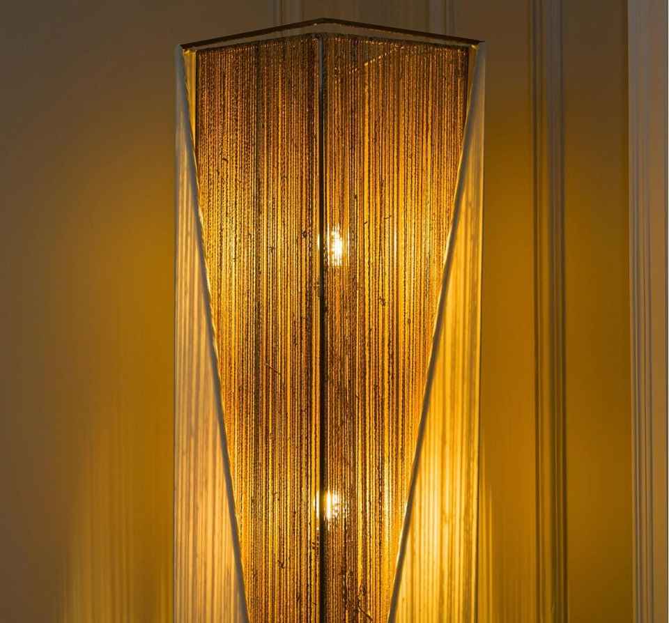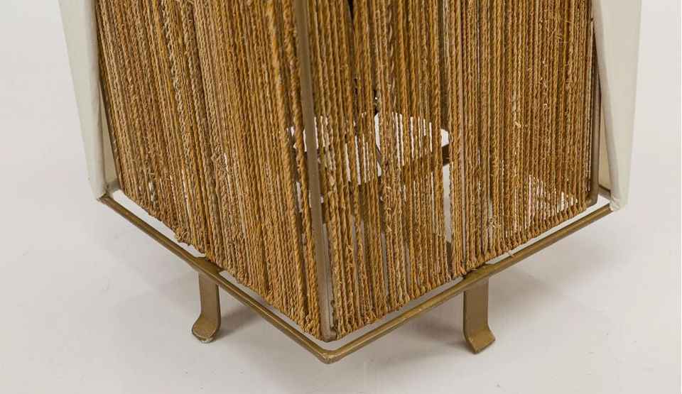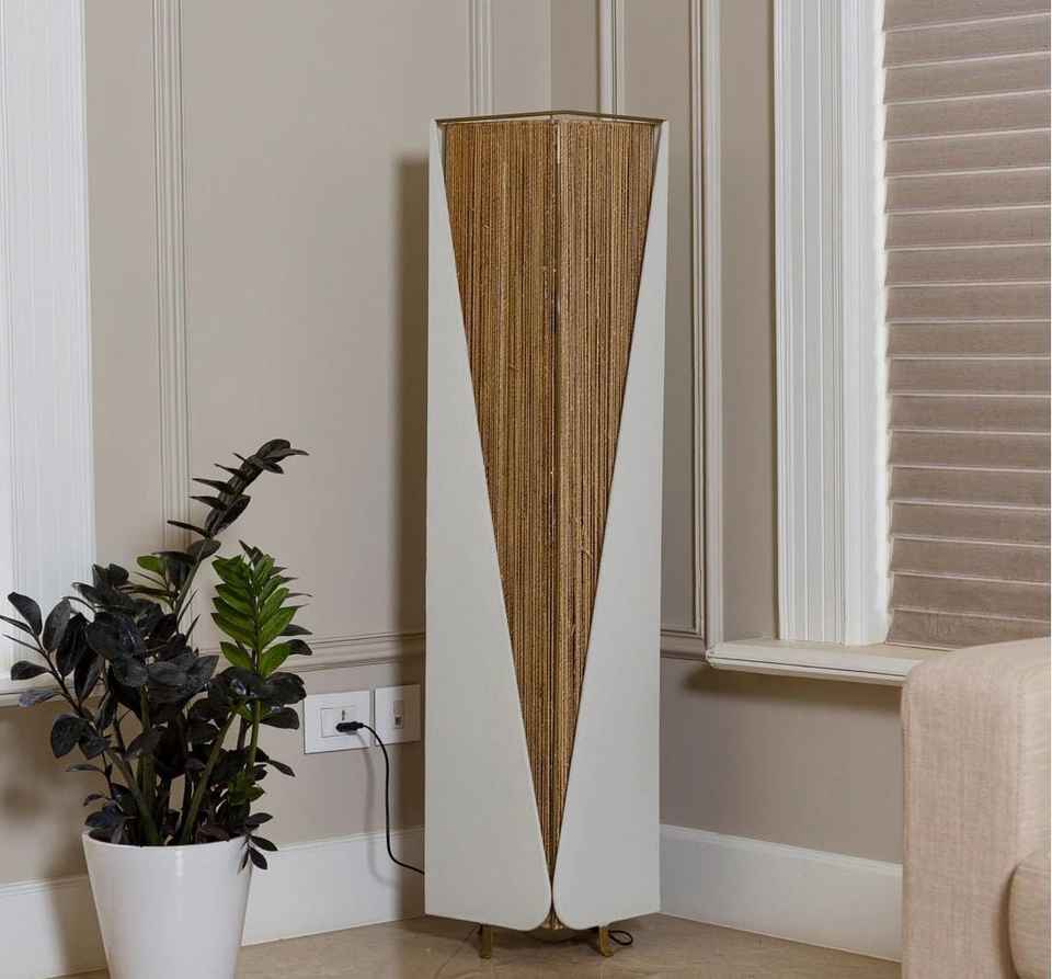 โคมไฟตั้งพื้นทรงสามเหลี่ยมที่ทันสมัย | โคมไฟมุมเส้นใยทอธรรมชาติ | ไฟเสาสไตล์ร่วมสมัย