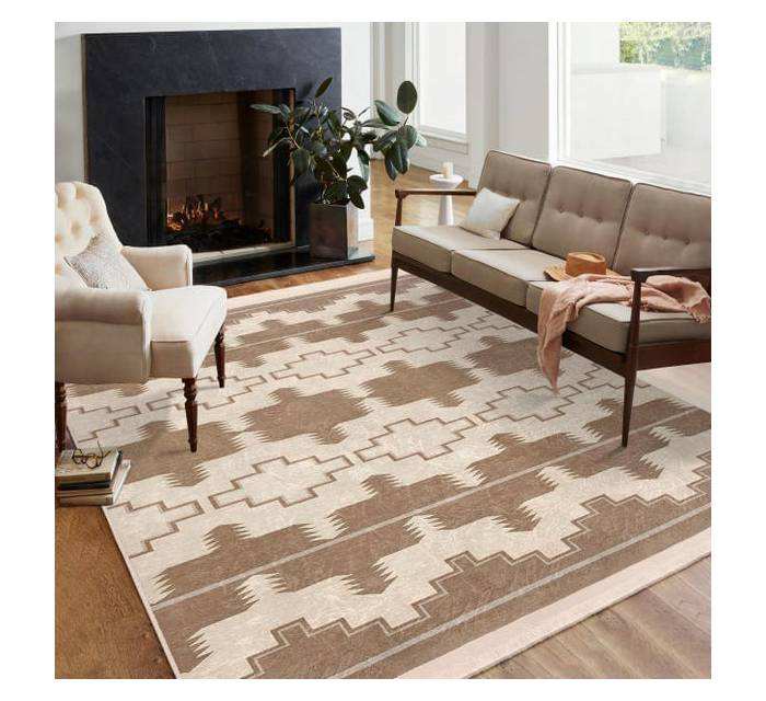 พรมลายเรขาคณิตชนเผ่าสมัยใหม่ สีน้ำตาลและเบจสไตล์ตะวันตกเฉียงใต้ สำหรับห้องนั่งเล่น ซักได้ กันลื่น พรมปูพื้นพิมพ์ลาย สำหรับบ้านและสำนักงาน