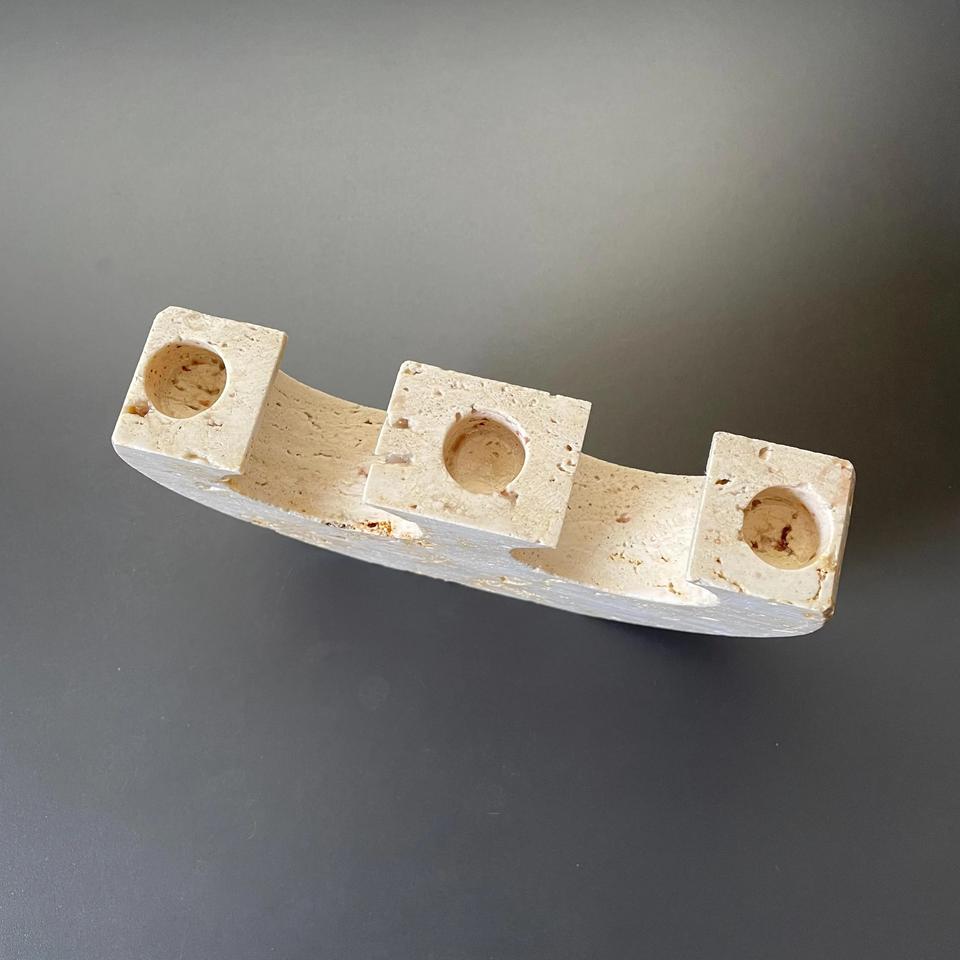 เชิงเทียนทรงโค้งสามชั้นทันสมัย ทำจากหินทราเวอร์ทีนธรรมชาติ ดีไซน์งานฝีมือ สำหรับตกแต่งบ้านอย่างมีระดับ