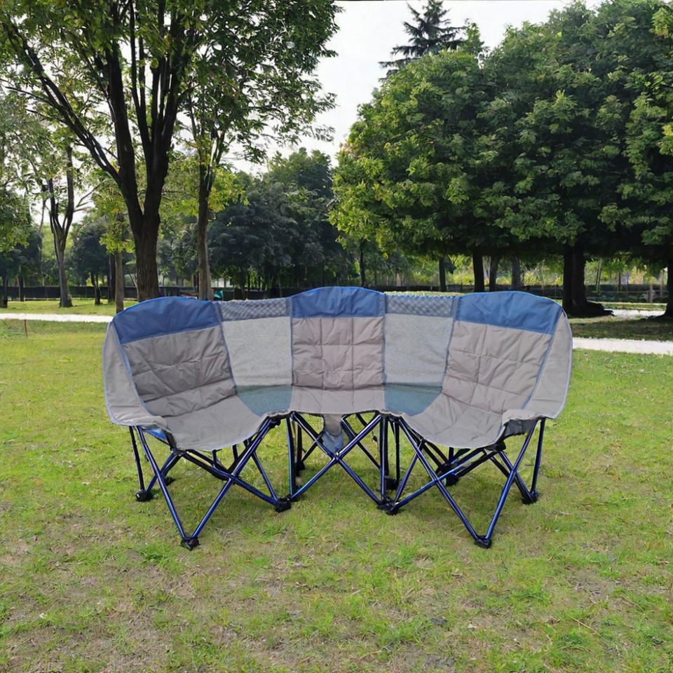 เก้าอี้ตั้งแคมป์แบบพกพาสามที่นั่งแบบทันสมัยเก้าอี้สแตนเลสเสริมที่พักแขนเฟอร์นิเจอร์กลางแจ้งพับได้สำหรับสวนชายหาด