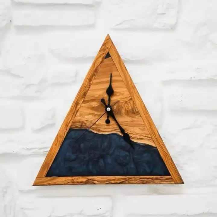นาฬิกาแขวนผนังเรซิ่นอีพ็อกซี่สีฟ้าเทอร์ควอยซ์ผสมลายไม้ขอบธรรมชาติทรงกลมแบบเงียบ สำหรับตกแต่งห้องนั่งเล่นสไตล์ชายฝั่ง