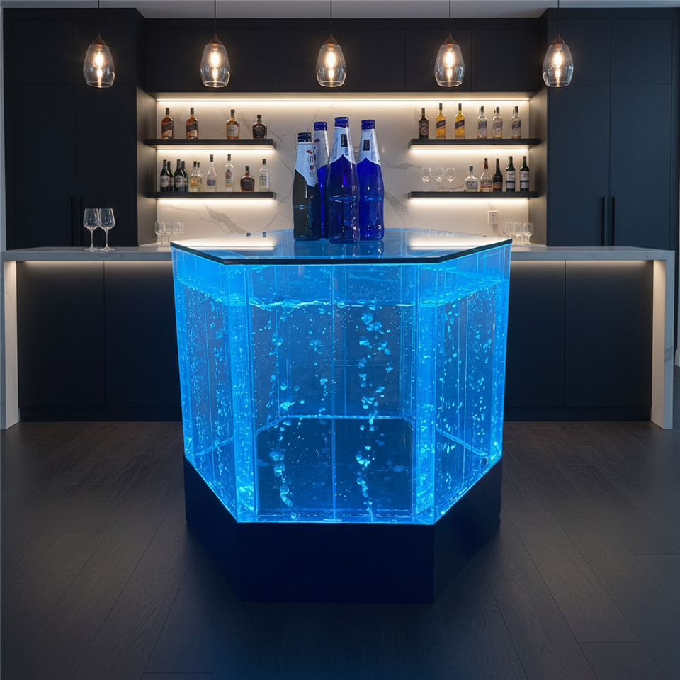 เคาน์เตอร์บาร์อะคริลิคทรงตัวยูทันสมัย พร้อมไฟ LED อเนกประสงค์ สำหรับห้องนั่งเล่นและใช้งานเชิงพาณิชย์