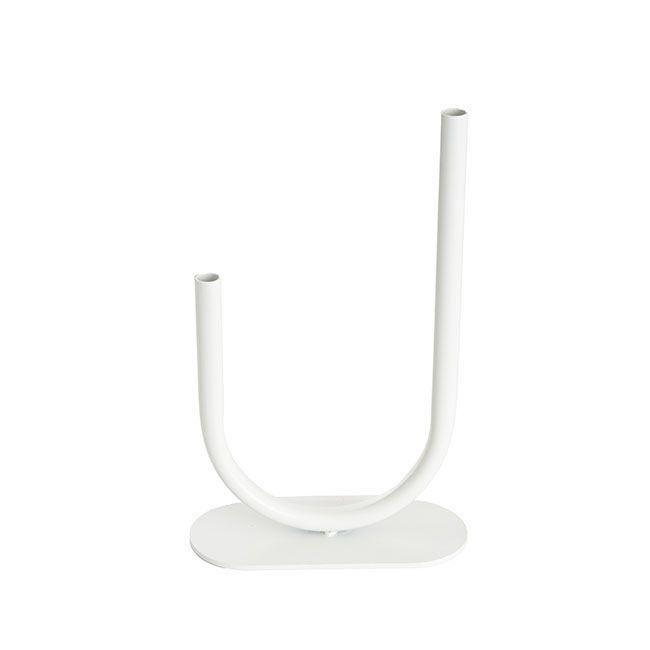 แจกันดอกไม้โลหะทรงตัวยูแบบท่อคู่ สีขาว ดีไซน์หรูหรา สำหรับตกแต่งโต๊ะงานแต่งงาน หรืองานเลี้ยงต้อนรับ