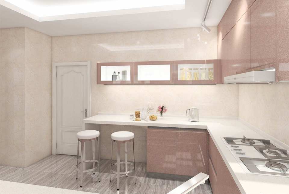 ตู้ครัวโมเดิร์นรูปตัวยูแบบโมดูลาร์ พร้อมบานตู้ไม้อัดไฮกลอส ดีไซน์คลาสสิก พร้อมไอส์แลนด์ไม้