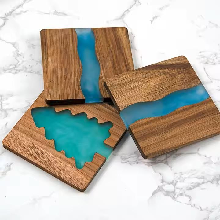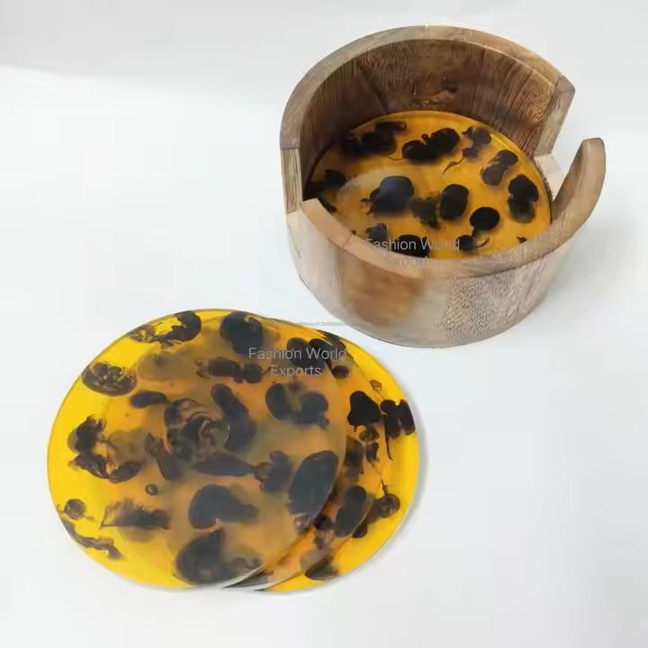 ที่รองแก้วไม้อีพ็อกซี่เรซินอีพ็อกซี่พรีเมี่ยมที่ไม่ซ้ำใครและสง่างามทันสมัยที่สร้างขึ้นในอินเดียโดยสมบัติที่สร้างขึ้น