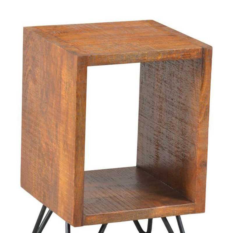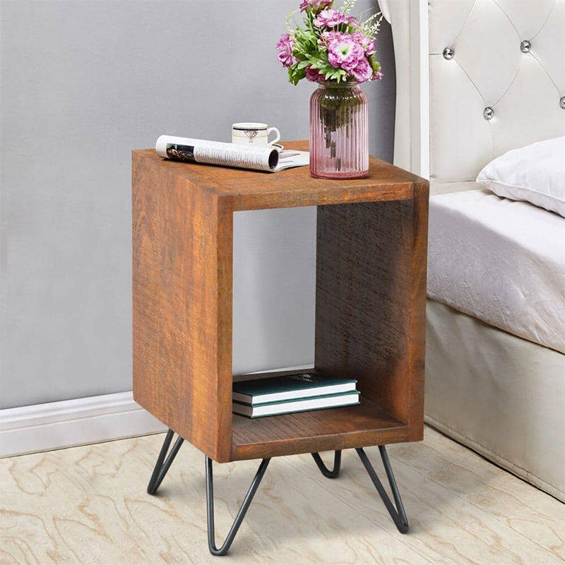 โต๊ะข้างเตียงไม้เนื้อแข็งดีไซน์ทันสมัยพร้อมถาดวางของว่างโลหะ ปรับแต่งได้ เฟอร์นิเจอร์ห้องนอน รับน้ำหนักได้ดี