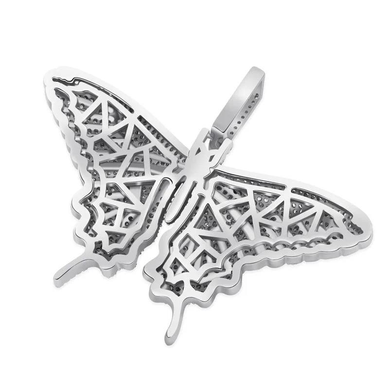 จี้เพชรโมอิสซาไนต์ VVS แบบโมเดิร์น ประดับเพชรเต็มตัว สไตล์ฮิปฮอป ชุบทองบนเงินแท้ 925 ดีไซน์รูปผีเสื้อ ราคาขายส่ง