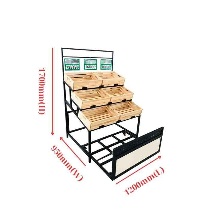 โต๊ะโชว์ผักและผลไม้สมัยใหม่สำหรับซูเปอร์มาร์เก็ต ชั้นวางโลหะแบบหลายชั้น ปรับแต่งได้ เฟอร์นิเจอร์ร้านขายของชำแบบตั้งพื้น