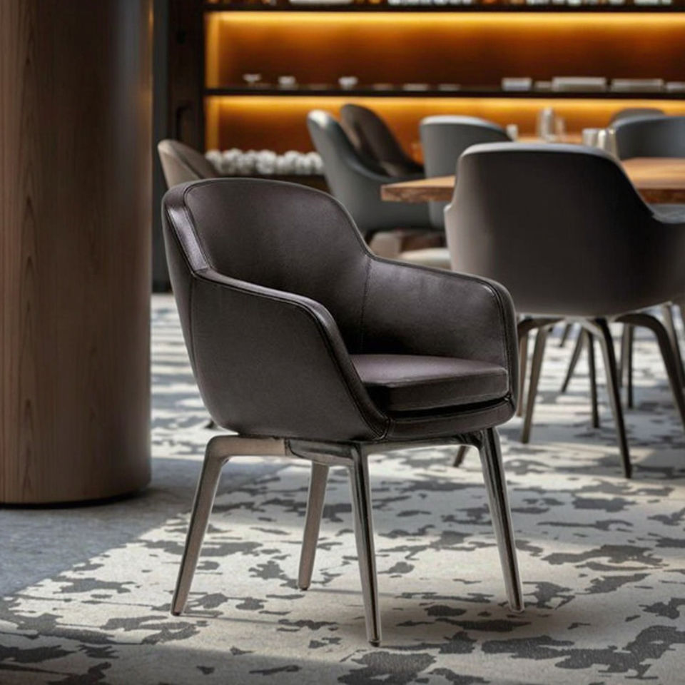 ชุดโต๊ะเก้าอี้รับประทานอาหารหนังนุ่มสไตล์โมเดิร์นอเนกประสงค์ พร้อมล้อเลื่อน สำหรับโรงเรียน โรงแรม บาร์ โดดเด่นด้วยดีไซน์ทันสมัย