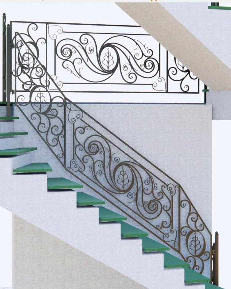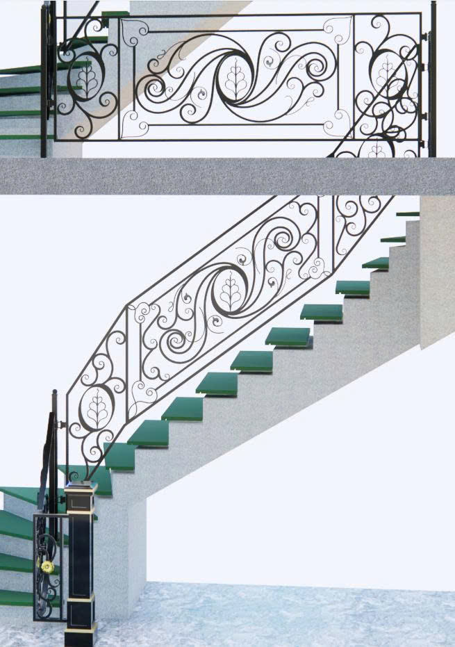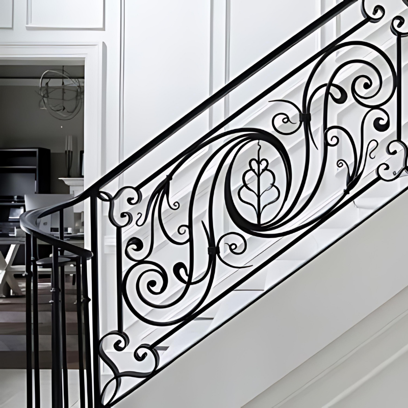 บันไดวิลล่าสมัยใหม่ทั้งภายนอกและภายในพร้อมราวบันไดเหล็กดัดตกแต่งและอุปกรณ์บันไดคุณภาพสูง