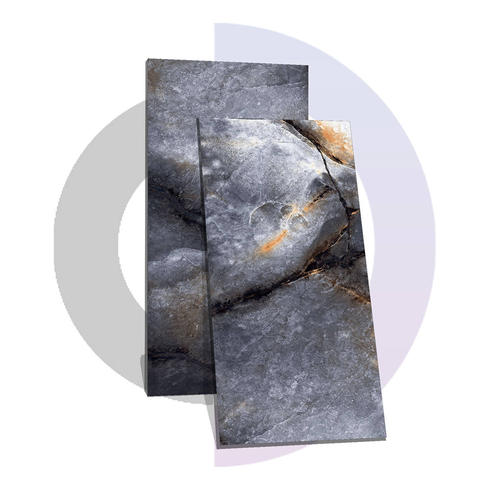 กระเบื้องพอร์ซเลนพรีเมียมหนา 9 มม. ขนาด 600x1200 มม. รุ่นโมเดิร์นวินเทจ สีน้ำตาลถ่าน เงาสูง ป้องกันแบคทีเรีย กันลื่น ลายหินอ่อน สำหรับปูพื้นห้อง