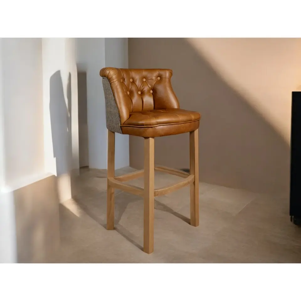 เก้าอี้บาร์สูงทำจากหนังสไตล์วินเทจทันสมัยกรอบไม้แข็งสำหรับห้องครัวบ้านบาร์โรงแรมรับประทานอาหารห้องนอนกลางแจ้ง