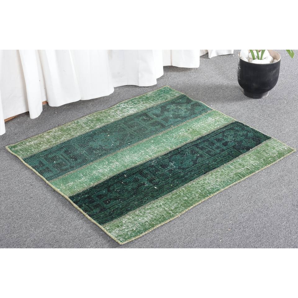 พรมตุรกีโบราณที่ทันสมัยขนแกะสีเขียว2.5ft 2.3 x ทรงสี่เหลี่ยมผืนผ้าขนาดใหญ่สไตล์คลาสสิกสำหรับห้องวัยรุ่น