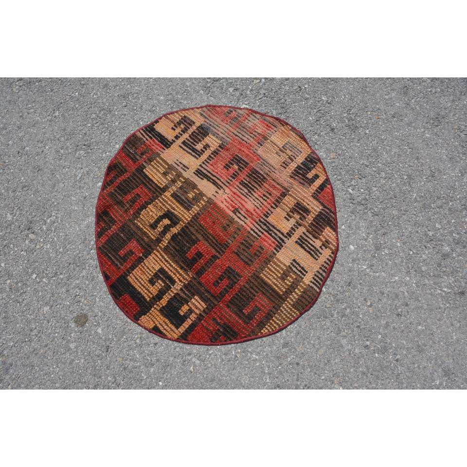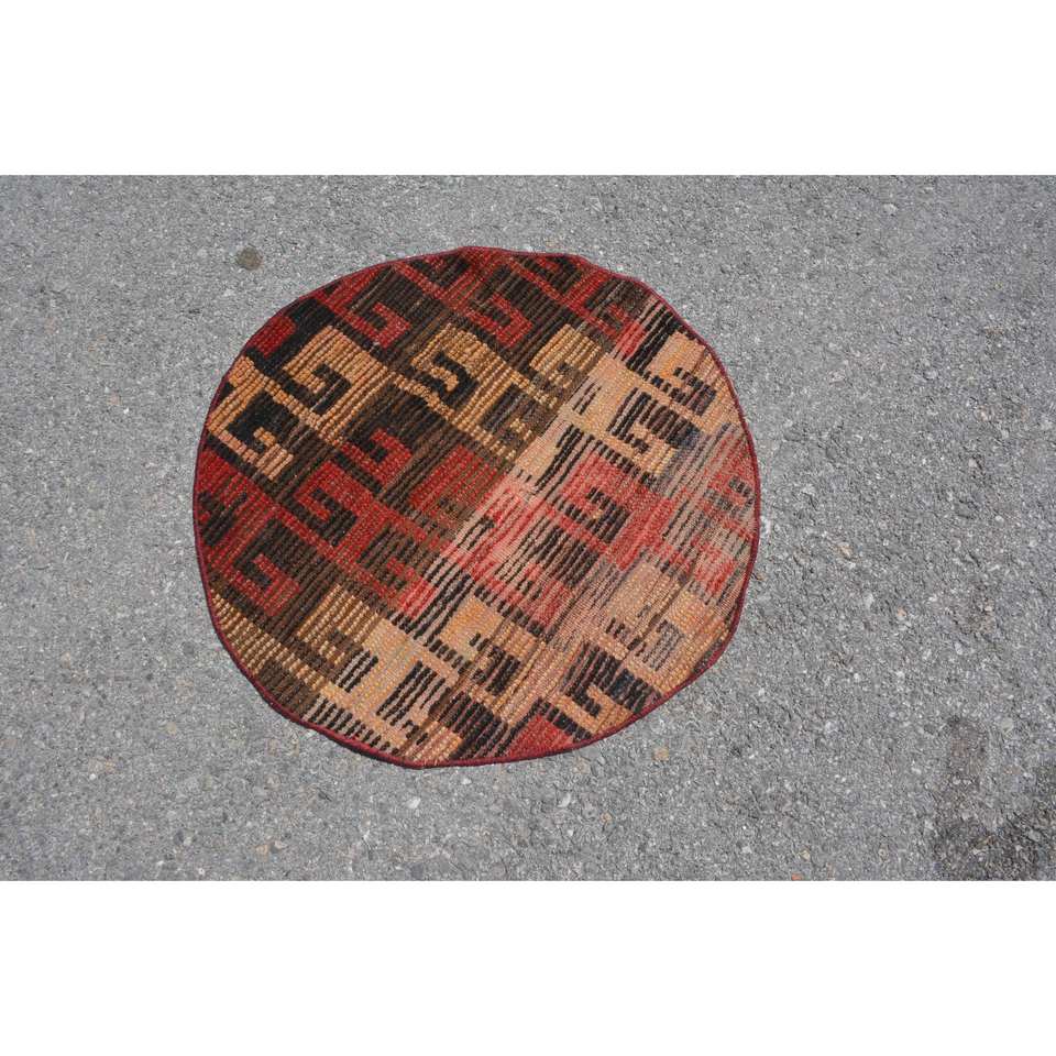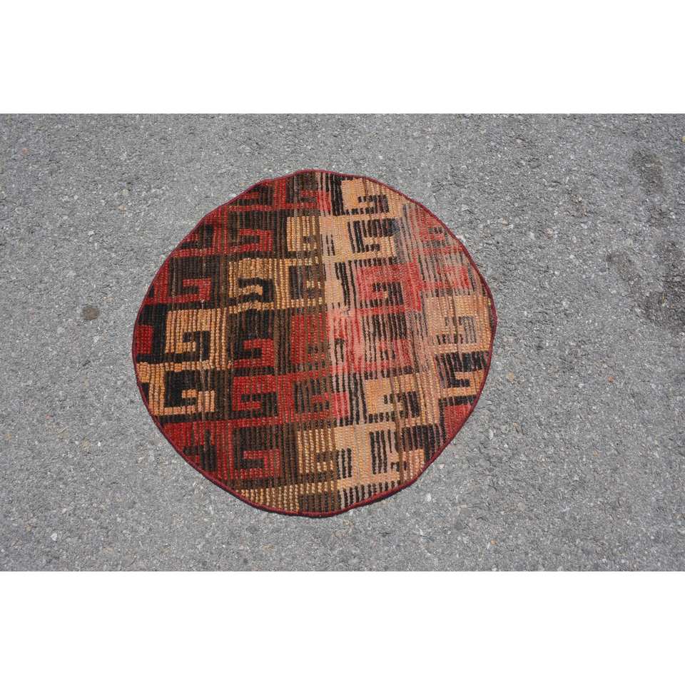 Modern Vintage Turkish Wool Latex Rug 2.3x2.3ft Red Brown Large Area Classic Style Patchwork Design for Hallway Room