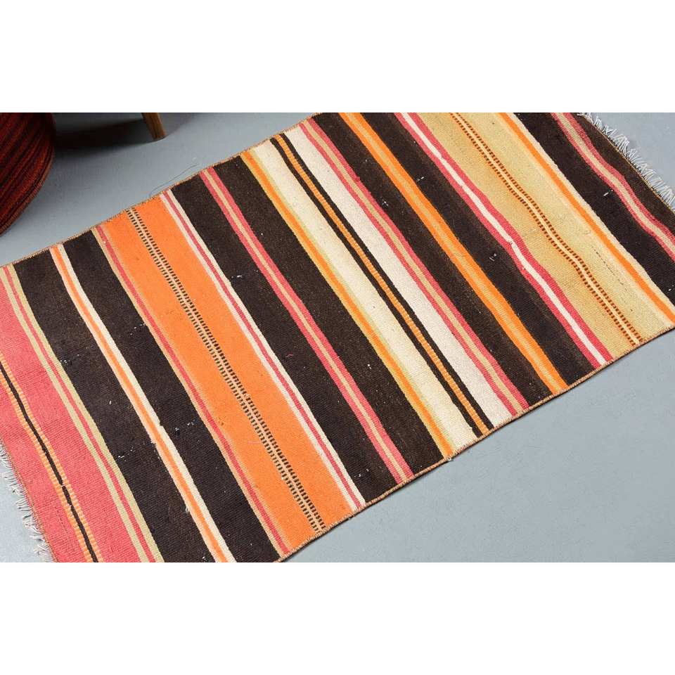 พรมตุรกีโบราณแบบทันสมัยเป็นมิตรกับสิ่งแวดล้อมสีส้มคลาสสิกสีน้ำตาลขนาด2x3,4ฟุตงานเย็บปะติดปะต่อกันทำจากขนสัตว์กองขนาดกลางพื้นที่ห้องสำหรับวัยรุ่น