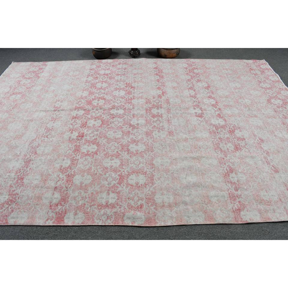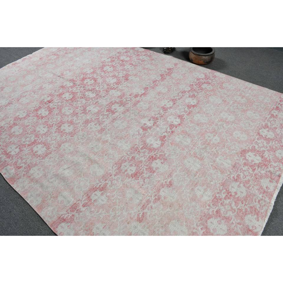 พรมขนแกะสไตล์ตุรกีวินเทจสีชมพูสีขาวขนาด7.1x10.8ฟุตพรมขนแกะขนาดใหญ่สำหรับห้องนั่งเล่นห้องโถง