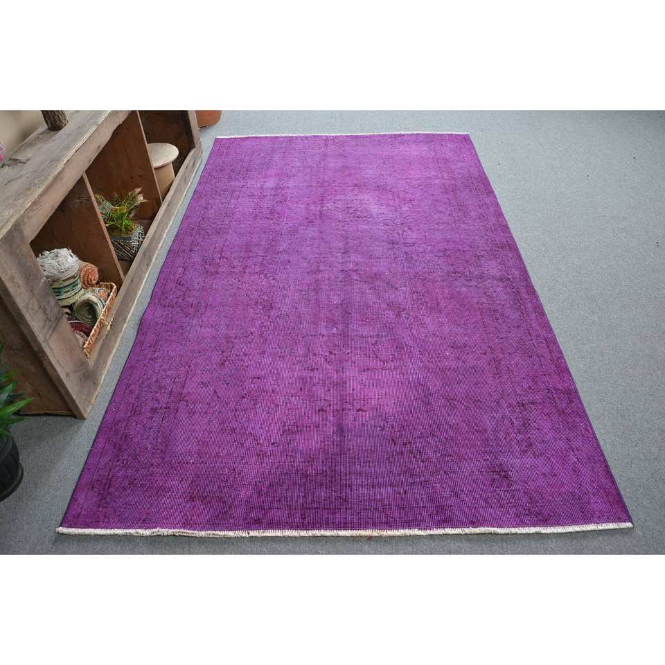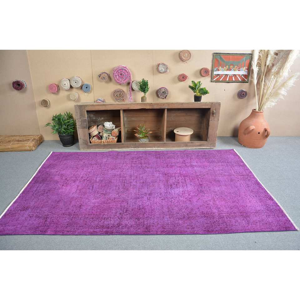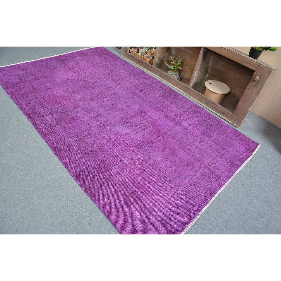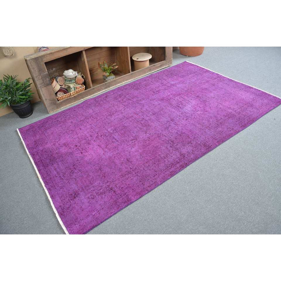 พรมตุรกีสไตล์วินเทจสีม่วง4.9x8ft แบบคลาสสิกขนแกะรูปสี่เหลี่ยมผืนผ้าพร้อมแผ่นรองยางสำหรับห้องนั่งเล่นหรือโถงทางเดิน