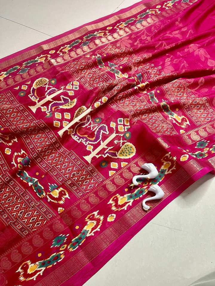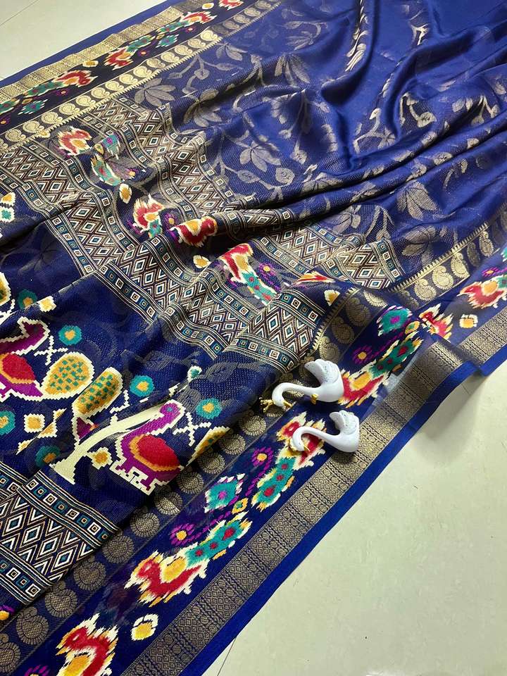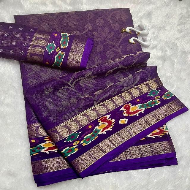 ผ้าซารีวิสโคสเครปสมัยใหม่ พร้อมขอบผ้าลายแจ็คการ์ด และลายฟอยล์บราโซ แห้งเร็ว