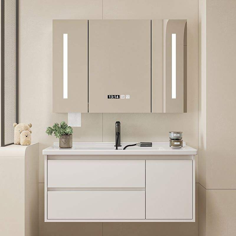 ตู้ห้องน้ำติดผนังแบบโมเดิร์นพร้อมอ่างล้างหน้า ตู้ห้องน้ำไม้อัดกันน้ำ