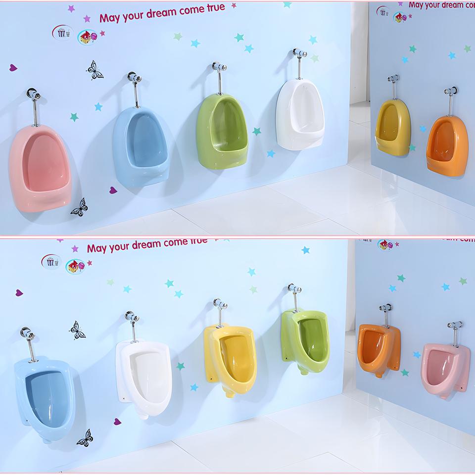 โถปัสสาวะเซรามิกสีติดผนังแบบปุ่มกดสำหรับโรงแรมและโรงเรียนอนุบาลใช้แหล่งกำเนิดฉีอานไบโจว