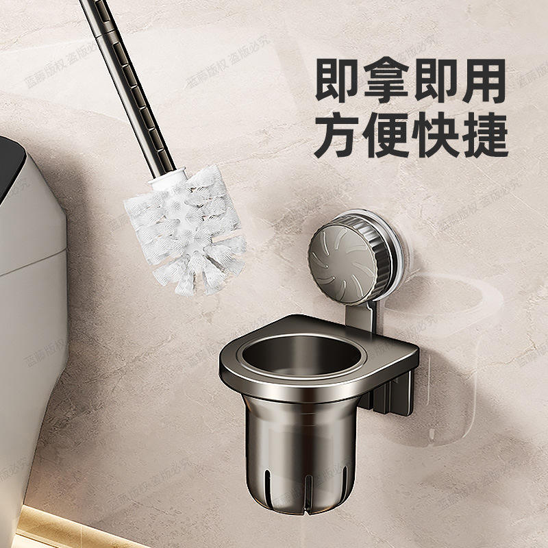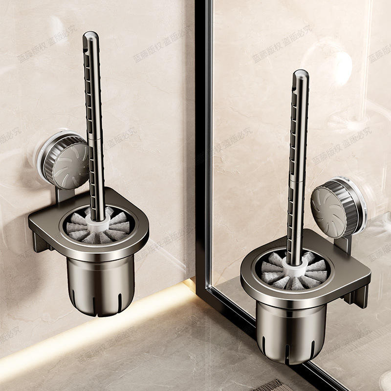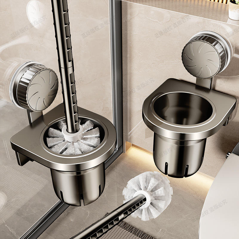 ที่ใส่แปรงขัดห้องน้ำแบบติดผนัง รุ่นใหม่ สีเทาปืน ทรงสี่เหลี่ยม ทนสนิม ติดตั้งด้วยถ้วยดูด ไม่ต้องเจาะ