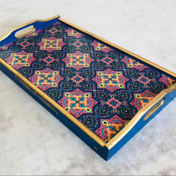 ถาดเสิร์ฟไม้วอลนัททันสมัย ทำด้วยมือ พร้อมหูจับแบบออตโตมัน สำหรับตกแต่งห้องนั่งเล่น รูปทรงและลวดลายปรับแต่งได้ ของขวัญสำหรับบ้าน MS
