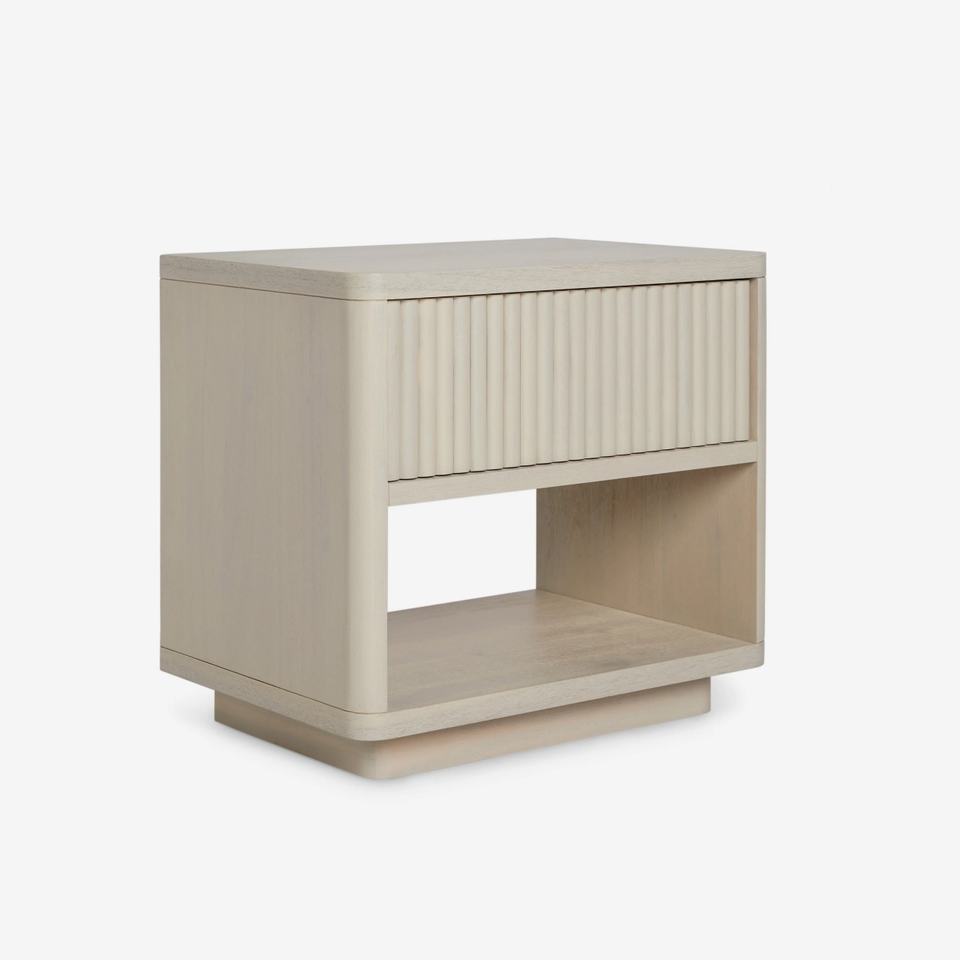 โต๊ะข้างเตียงไม้สีขาวสไตล์โมเดิร์นพร้อมลิ้นชัก