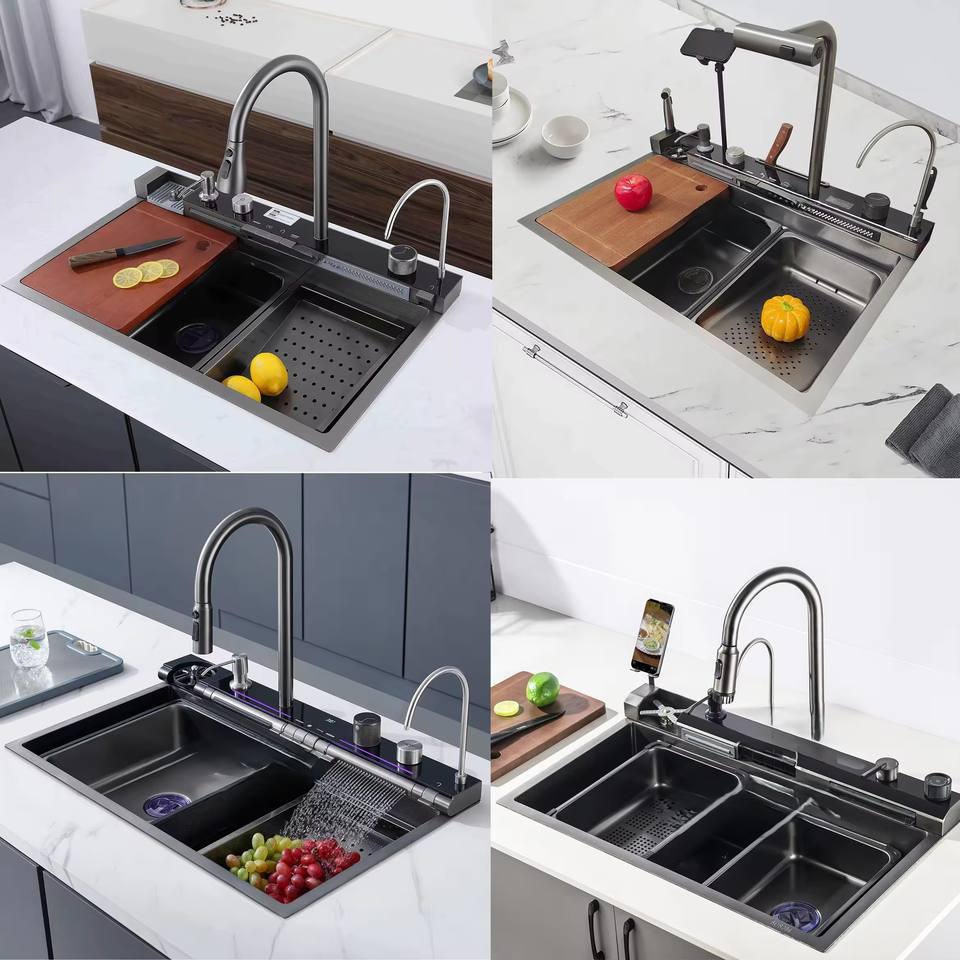อ่างล้างจานอ่างล้างจานแบบเดี่ยวทรงน้ำตกอ่างล้างจานทำจากสเตนเลสสตีลที่ทันสมัย