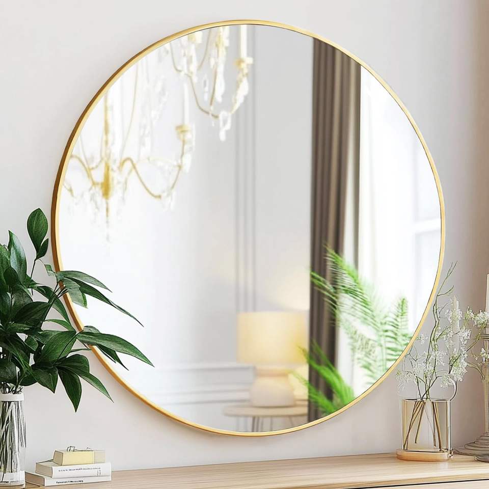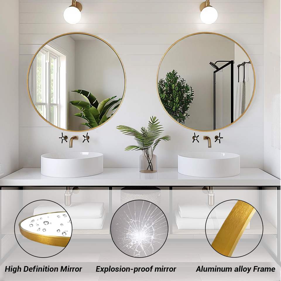 กระจกห้องน้ำกรอบสีทองกันน้ำที่ทันสมัยพร้อมไฟ LED 3สีเพื่อเพิ่มความสว่างให้กับผนังโต๊ะเครื่องแป้ง
