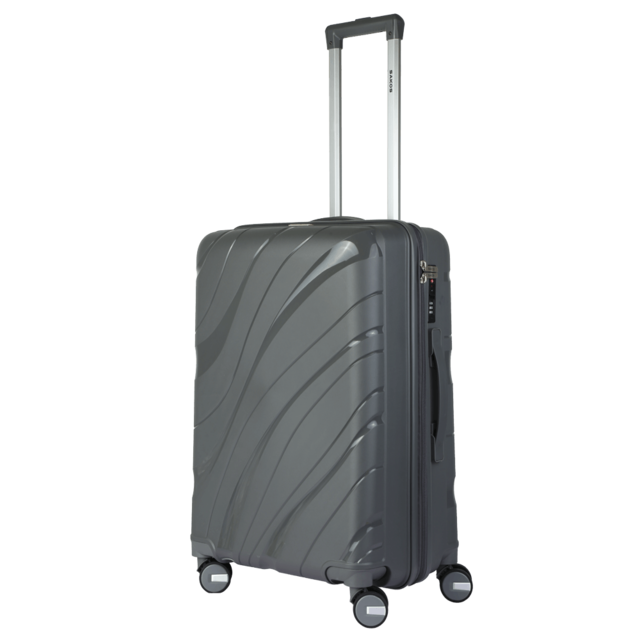 กระเป๋าเดินทางแบบแข็งลายคลื่นทันสมัย ทำจากโพลีโพรพิลีน (PP) ตัวกระเป๋าแข็งแรงทนทาน หมุนได้ 360 องศา ° ล้อหมุนคู่แบบเงียบ