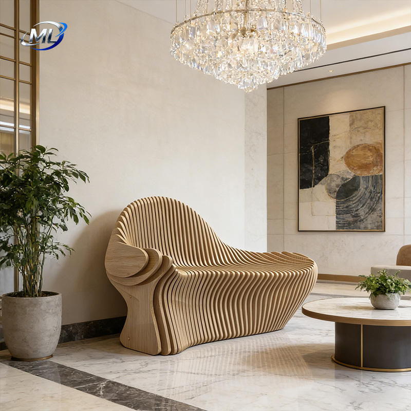 ม้านั่งไม้เนื้อแข็งทรงคลื่นทันสมัย ทนทาน เหมาะสำหรับใช้งานกลางแจ้งในสวน สำนักงาน พื้นที่สาธารณะ สถานที่จัดกีฬา และบริเวณทางเข้า