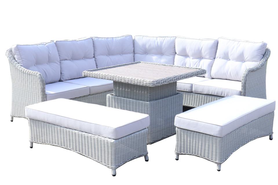 ชุดโซฟาหวายพลาสติกทนทานต่อสภาพอากาศทันสมัยเฟอร์นิเจอร์กลางแจ้งสำหรับสวนร้านอาหารวิลล่า