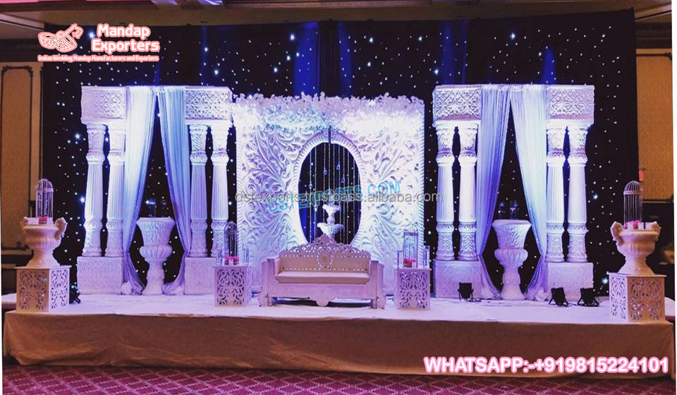 อุปกรณ์ประกอบฉากตกแต่งเวทีแต่งงานแบบโมเดิร์นอุปกรณ์ตกแต่งงานแต่งงานของสหรัฐอเมริกาไฟเบอร์ดอกไม้เวทีอินเดียตกแต่งงานแต่งงาน