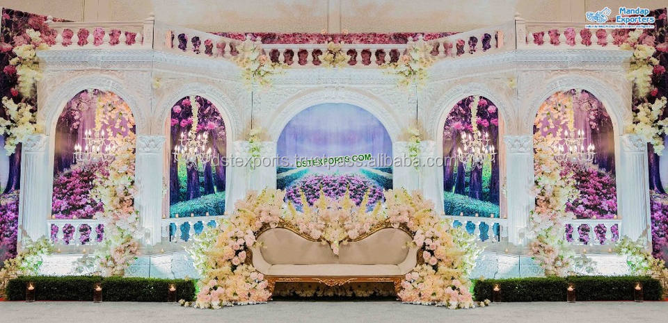 งานแต่งงานที่ทันสมัยเวทีรอบแผงเวทีแต่งงานแบบดั้งเดิมสีขาวกลับกรอบที่น่าประทับใจเวทีแต่งงาน C กรอบหลัง