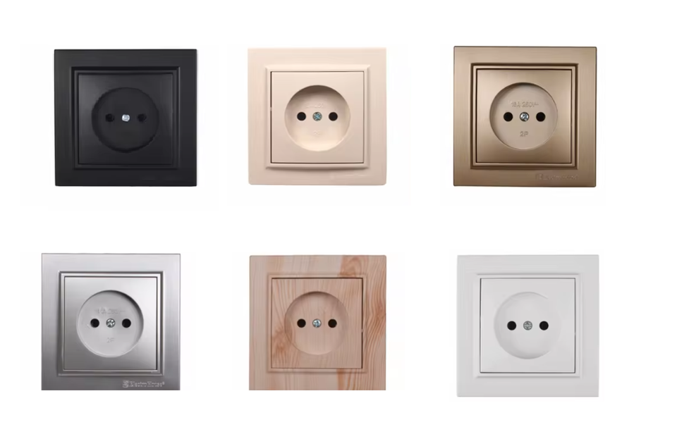 เต้ารับไฟฟ้าติดผนังแบบฝัง รุ่นโมเดิร์น สีขาว 16A 220V IP22 ไม่มีสายดิน วัสดุเทอร์โมพลาสติก ทองแดง มาตรฐาน EU UK