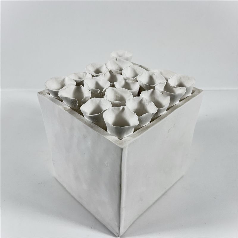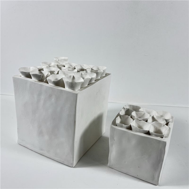 แจกันเซรามิกสีขาวทันสมัยรูปทรงกลีบดอกไม้ที่โดดเด่นดีไซน์ร่วมสมัยที่ทันสมัยสำหรับการจัดแสดงบนโต๊ะ