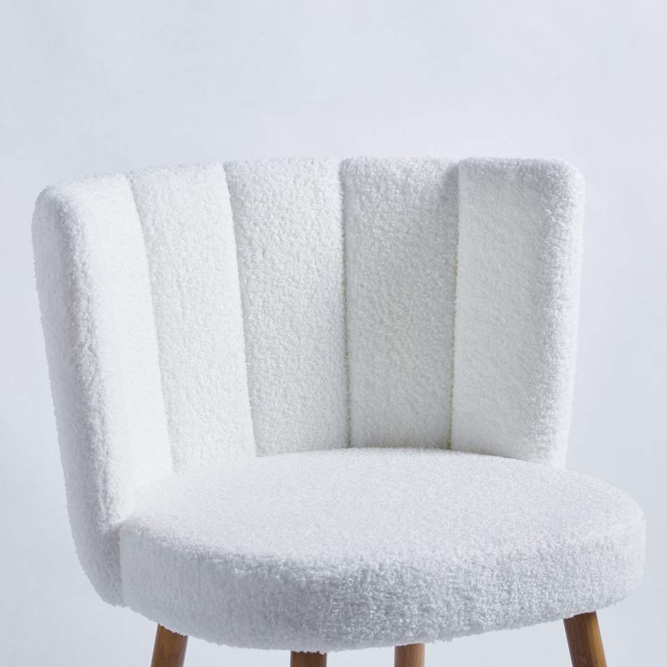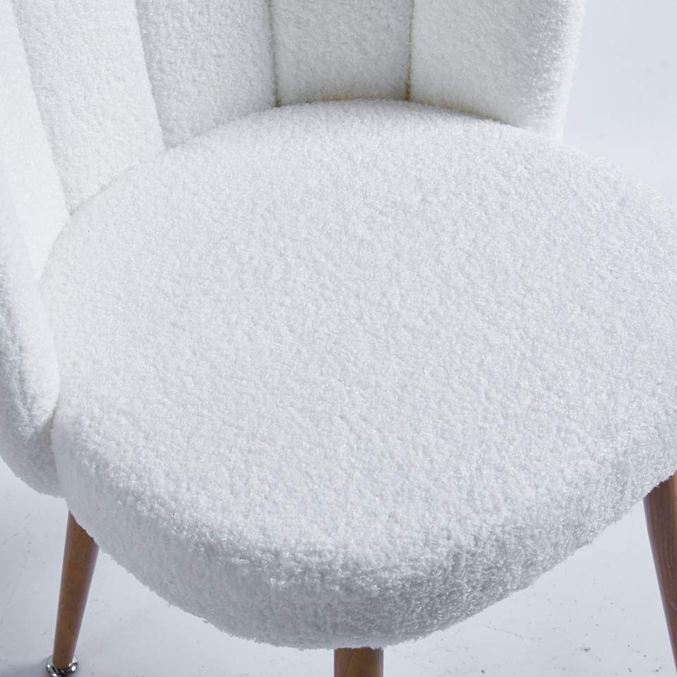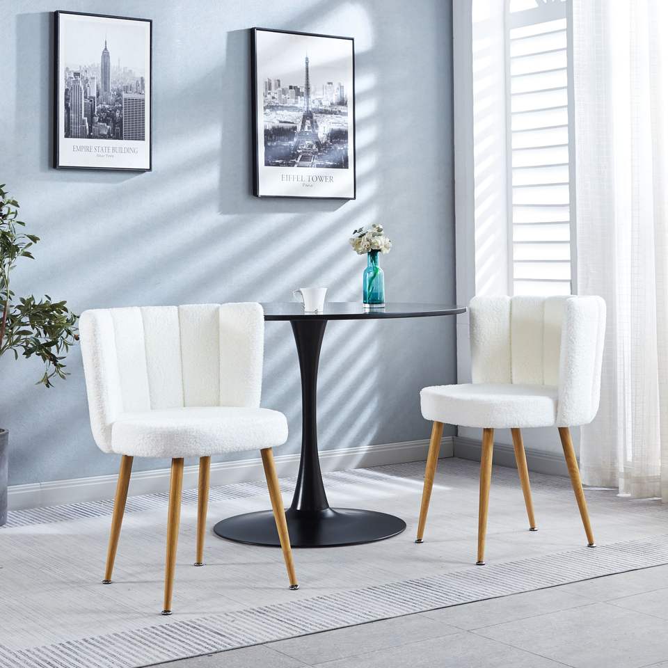 ชุดเก้าอี้รับประทานอาหารสีขาวทันสมัย 2 ตัว พนักพิงสบายพร้อมเบาะขนสั้น ขาเหล็กสีไม้