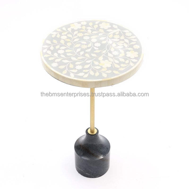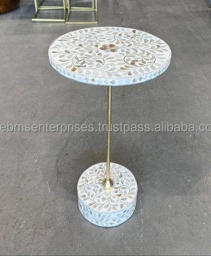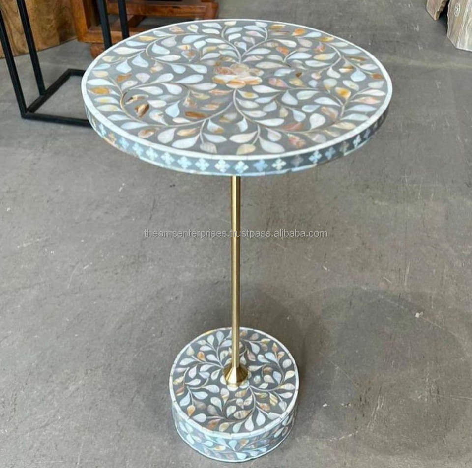 โต๊ะกาแฟไข่มุกสำหรับคนคนเดียวพร้อมขาตั้งโลหะหรูหราบ้าน/ร้านอาหารโต๊ะรับประทานอาหารฝังมุก