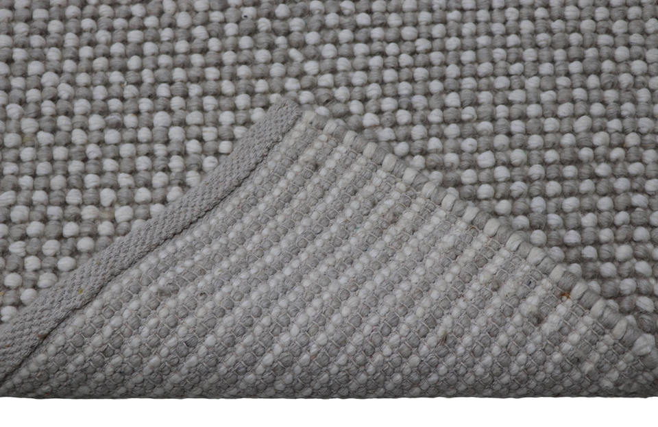 พรมทอลายเรขาคณิตผ้าขนแกะสีเทาสีขาวแบบทันสมัยออกแบบด้วยมือมีพู่ฟองหนาเป็นมิตรกับสิ่งแวดล้อมทนทาน