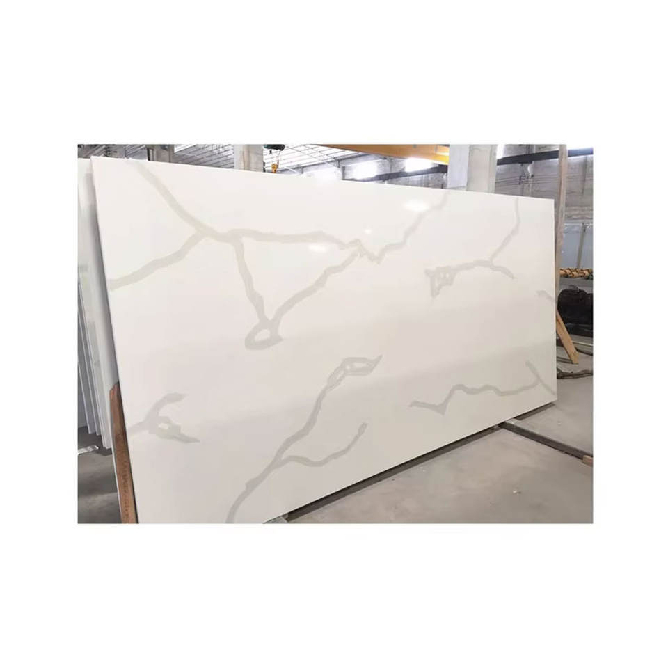 แผ่นหินอ่อนสีขาวแบบทันสมัยหินควอตซ์แผ่นใหญ่สำหรับปูพื้นงานประดิษฐ์