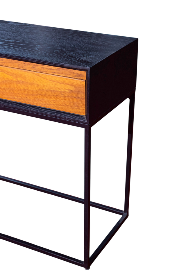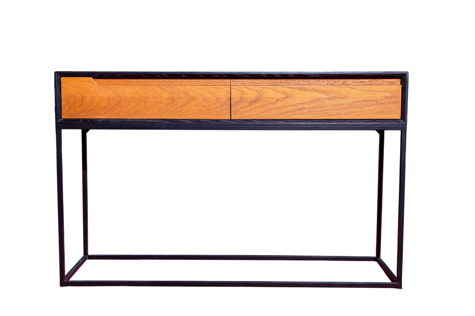 โต๊ะคอนโซลไม้โอ๊คสีขาวที่ทันสมัยพร้อมที่เก็บของและขาโลหะสำหรับใช้ในวิลล่าและโรงแรม