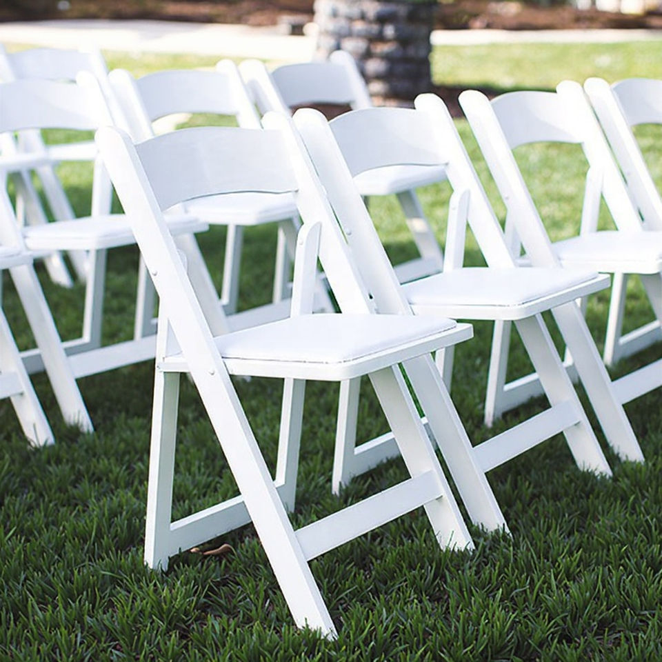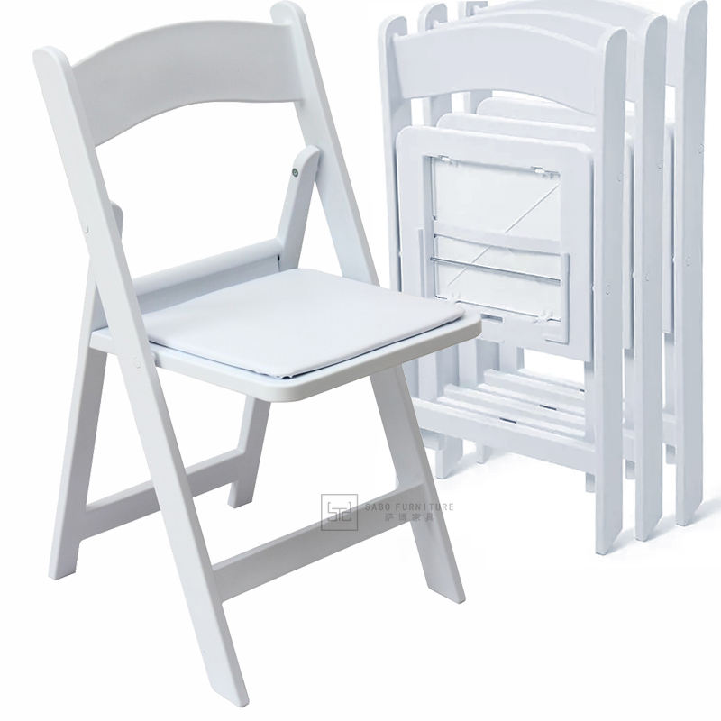 เก้าอี้พลาสติกเรซิ่นสีขาวแบบพับได้เก้าอี้แบบนิ่มพับได้สำหรับใช้ในสวนกลางแจ้งรับประทานอาหารสำหรับงานเลี้ยงสังสรรค์ในโรงเรียน